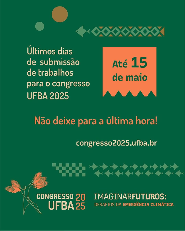 Últimos dias para a submissão de trabalhos no Congresso UFBA 2025! Não deixe para a última hora.