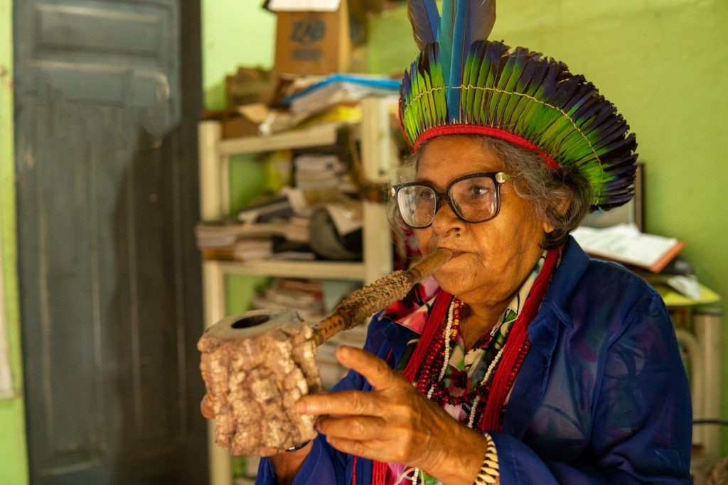 Antônia Braz Santana, conhecida como Dona Japira, Dona Antonia e também como Tonia, é uma importante educadora, zeladora dos saberes tradicionais e liderança pataxó. Japira é pajé da Aldeia Novos Guerreiros, localizada entre Porto Seguro e Santa Cruz Cabrália (Bahia), e exerce uma singular função junto à sua comunidade e seu povo: é conhecedora e educadora das histórias, tradições e tecnologias do povo pataxó, dos rituais, da cura, das rezas e dos cuidados. Participou como professora convidada duas vezes na Universidade Federal do Sul da Bahia. |