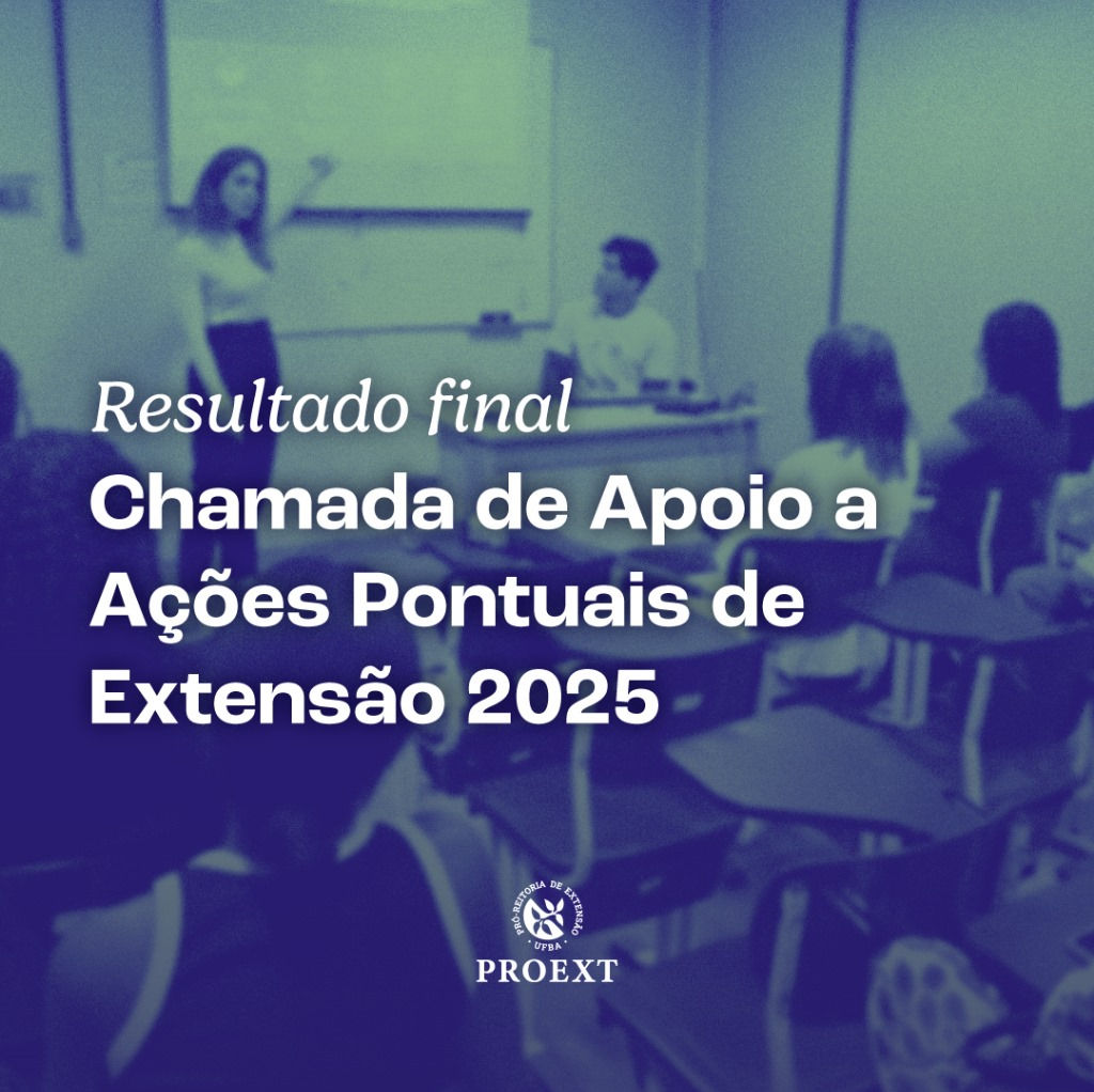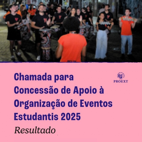 A Pró-Reitoria de Extensão da UFBA informa o resultado final da Chamada para Apoio à Organização de Eventos Estudantis 2025-terceira etapa.
