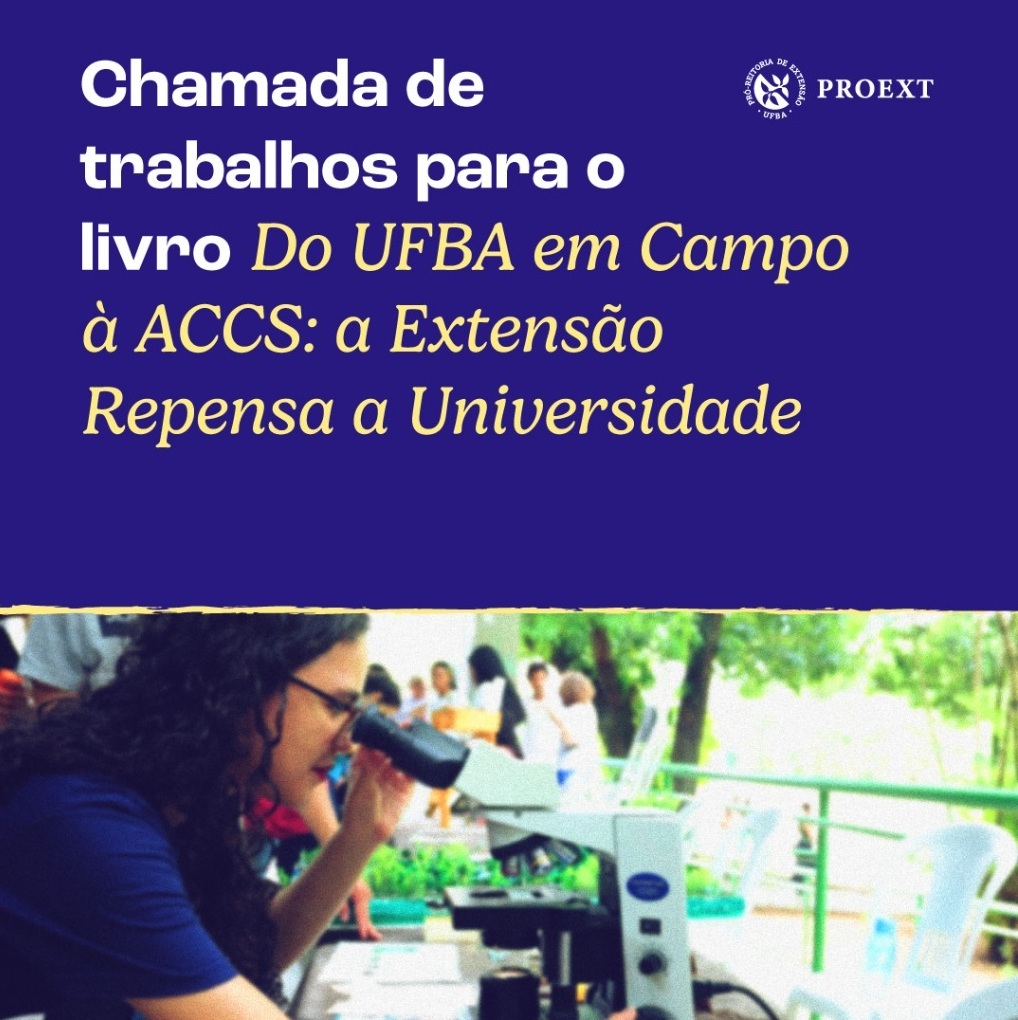 A Pró-Reitoria de Extensão universitária informa a retificação da Chamada para o livro “Do UFBA em Campo à ACCS: a Extensão Repensa a Universidade”.