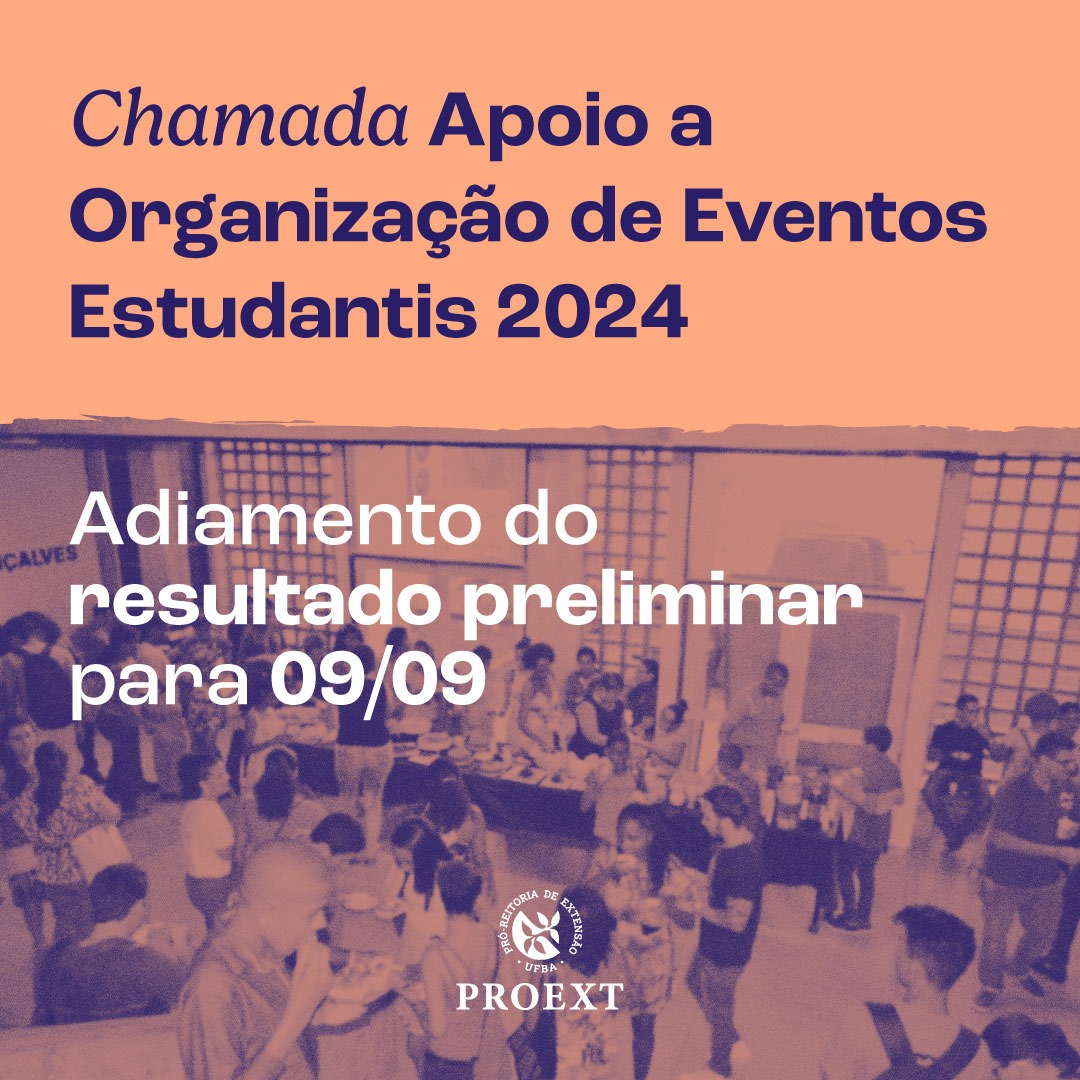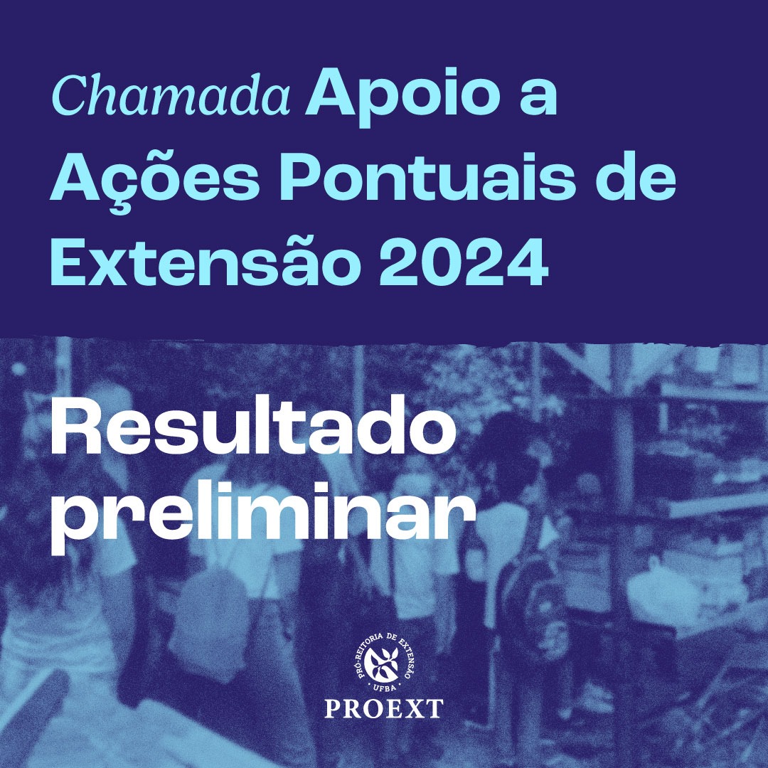O cronograma completo pode ser conferido na página da Chamada de Apoio a Ações Pontuais de Extensão 2024. Pedidos de esclarecimentos sobre a documentação podem ser enviados pelo email sediproext@ufba.br.