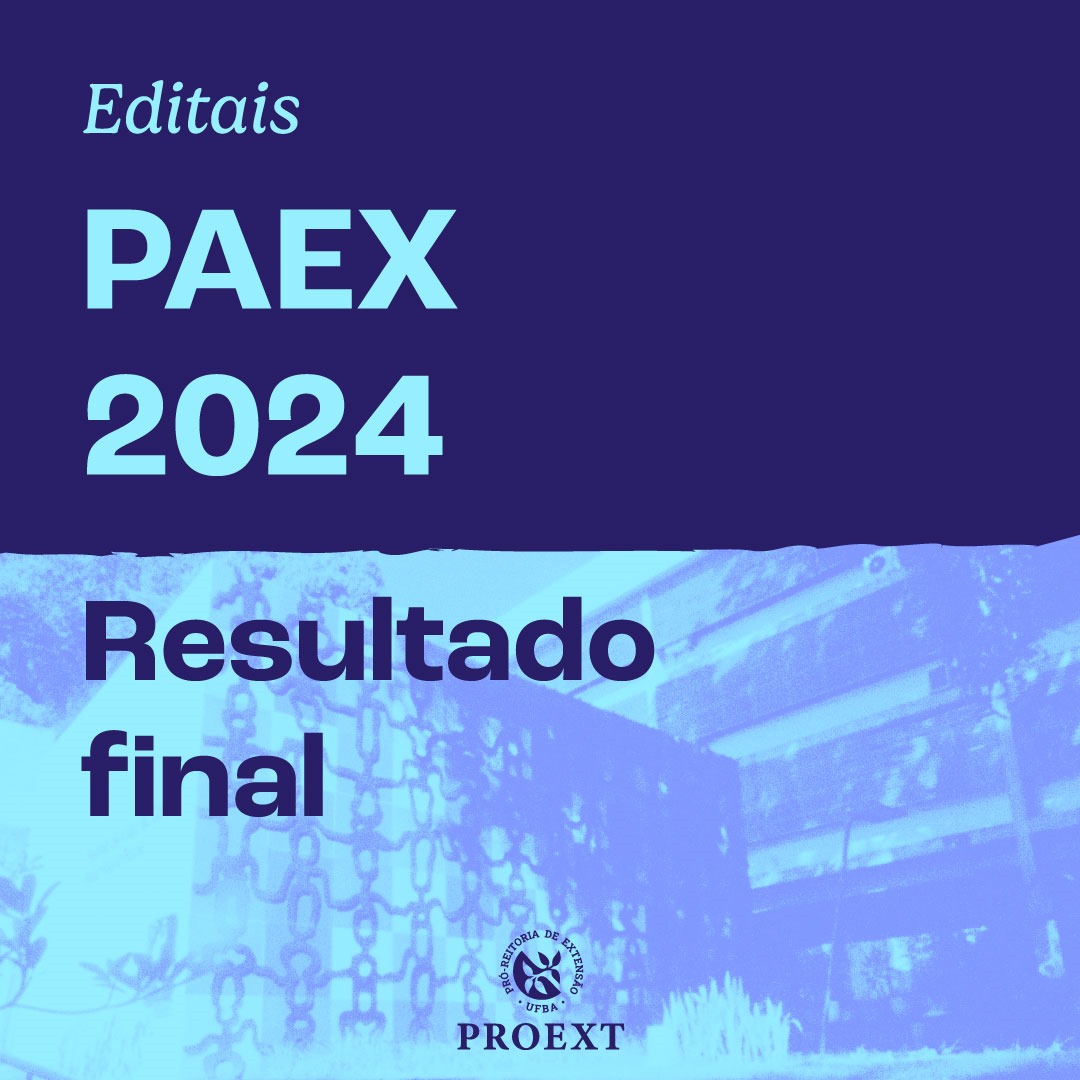 A Pró-Reitoria de Extensão Universitária (PROEXT) informa o resultado final do edital Programa de Apoio à Extensão Docente (PAEX) 2024, após a apreciação dos recursos, cujo prazo de solicitação ficou aberto até 12/06/2024.