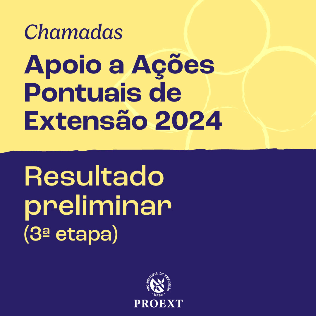 A Pró-Reitoria de Extensão Universitária (PROEXT) lança a edição 2023 dos seus editais e chamadas, direcionados a discentes, servidores docentes e técnico-administrativos/as (TAE). O lançamento inclui editais PAEx, PIBIEX, PIBIARTES, PIBExA e Artes Indígenas, bem como as chamadas de para a Concessão de Apoio à Organização de Eventos Estudantis e de Utilização do Cinema da UFBA. As propostas podem ser submetidas a partir do dia 05 de maio e possuem cronogramas específicos para cada edital/chamada.
