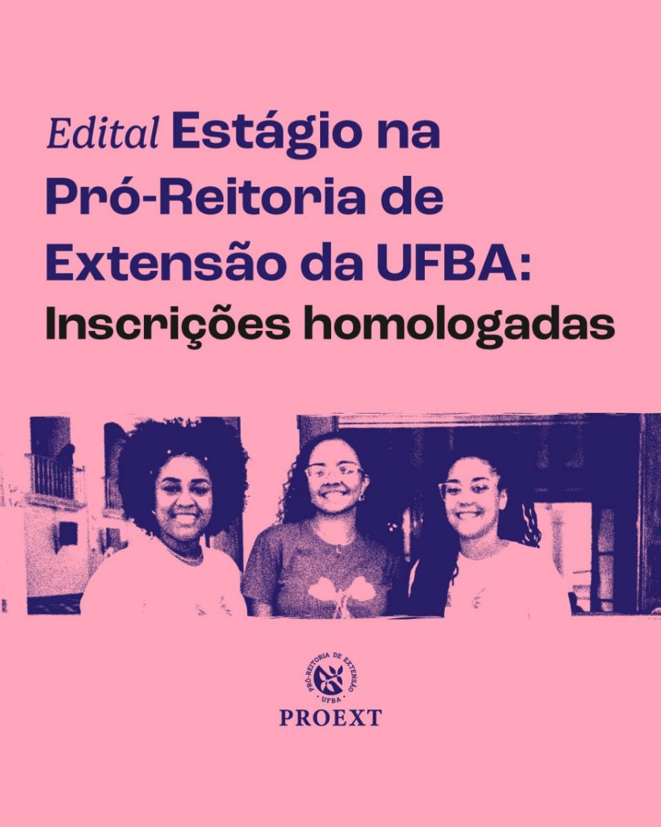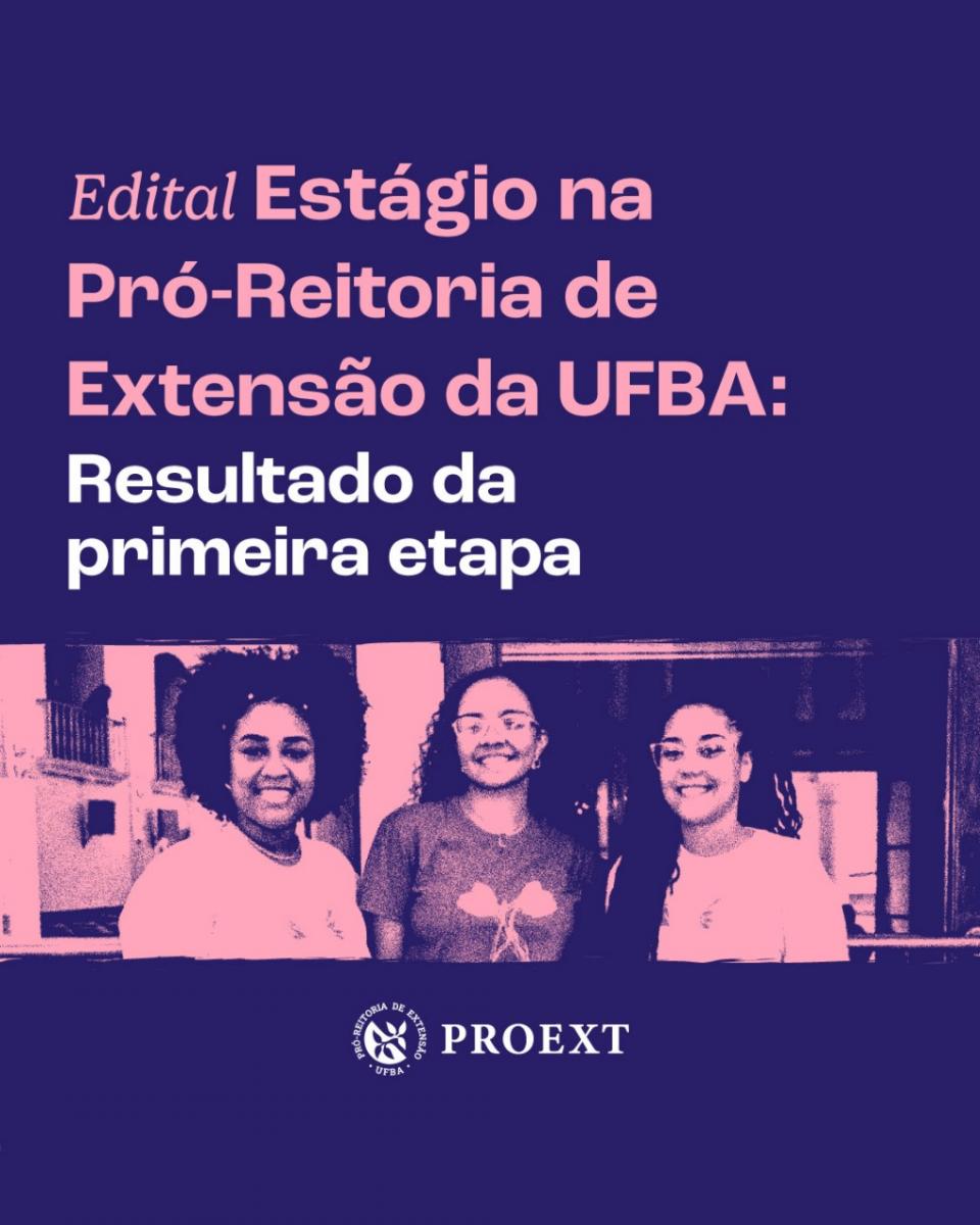 A Pró-Reitoria de Extensão da UFBA informa que o resultado da segunda etapa do Edital para estágio não obrigatório na Coordenação de Formação e Integralização Curricular da PROEXT já está disponível.