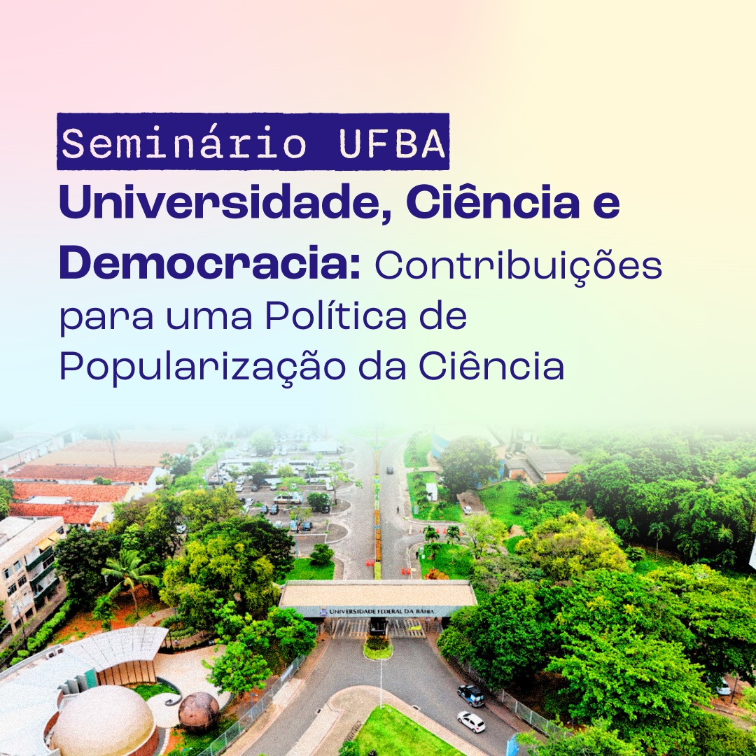 A Universidade Federal da Bahia sediará o Seminário Universidade, Ciência e Democracia: Contribuições para uma Política de Popularização da Ciência, nos dias 21 e 22 de maio, no campus de Ondina, em Salvador.